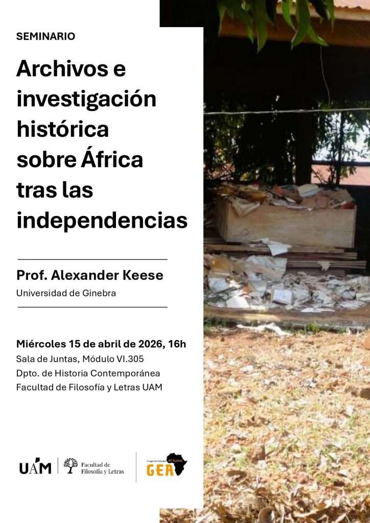 El Grupo de Estudios Africanos de la Universidad Autónoma de Madrid, invita al seminario “Archivos e investigación histórica sobre África tras las independencias”, que será impartido por Alexander Keese, profesor de la Universidad de Ginebra.